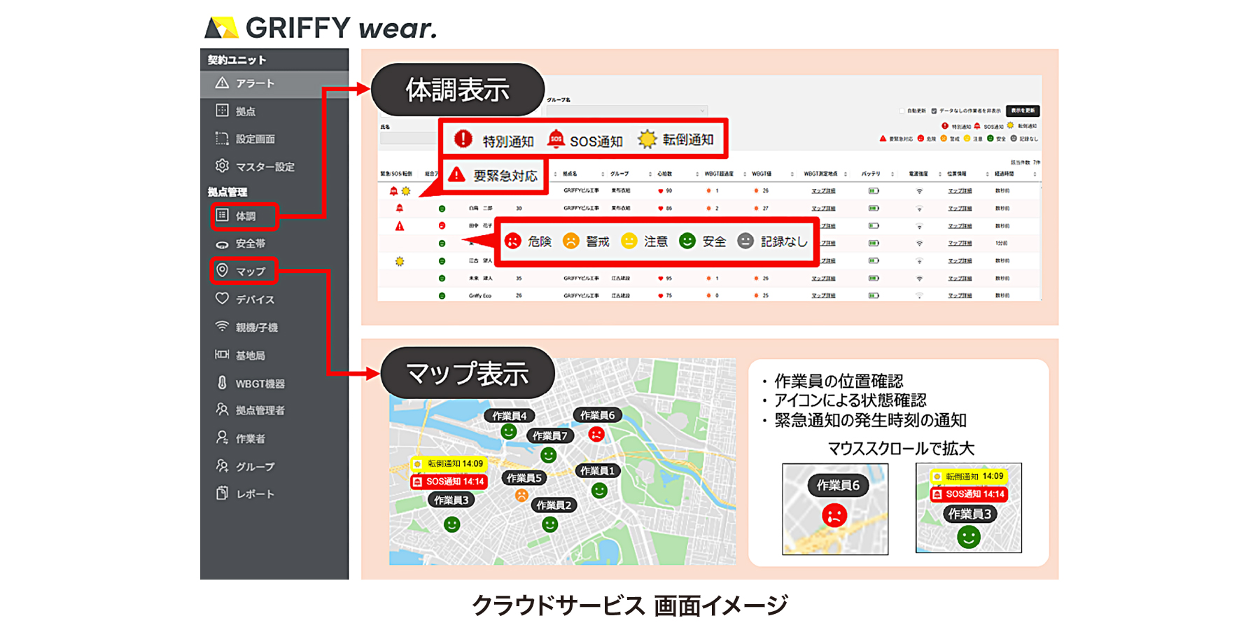 GRIFFY、体調管理ソリューション「GenVital LTE」に新機能「SOS通知」・「転倒通知」を追加